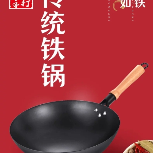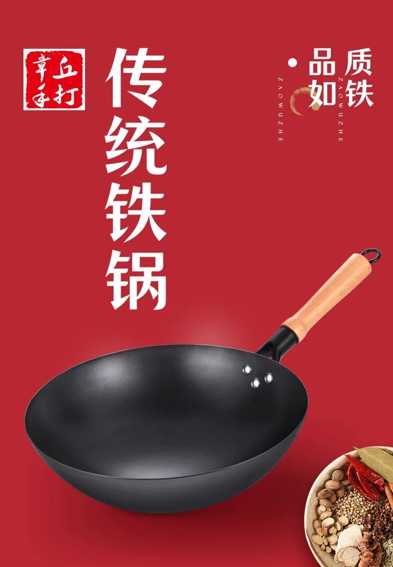 章丘炒菜锅传统铁锅官方旗舰老式炒锅家用不粘锅无涂层燃气灶适用